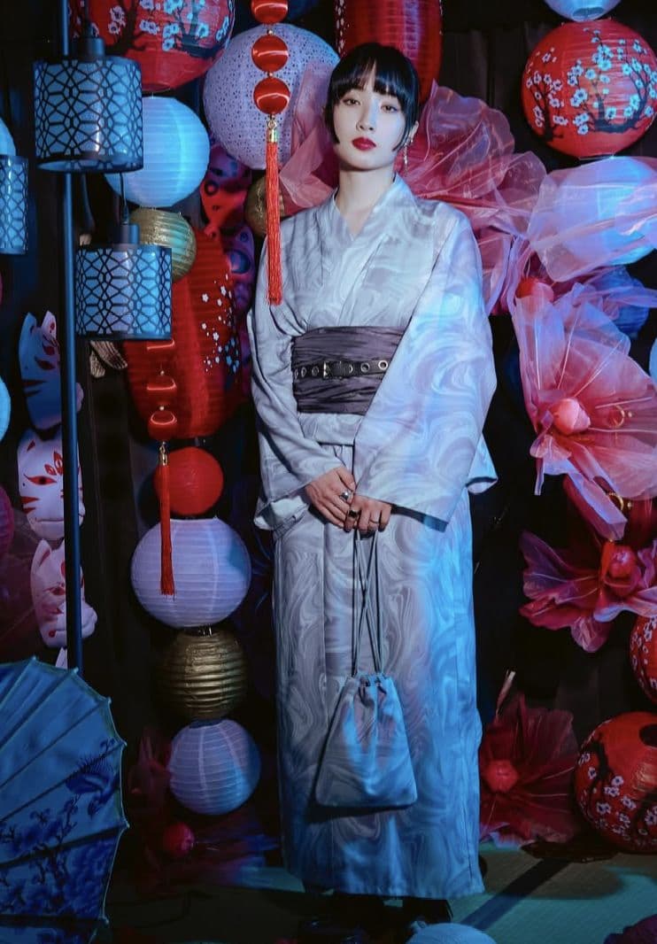 Dita 花柄浴衣 グレー帯 下駄 セット